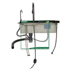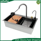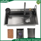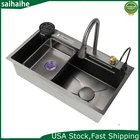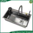Stainless Steel Flying Rain Waterfall Kitchen Sink with Faucet 31.5" Single Bowl About this item: 【Dual-Track Design of Our Sink】 The dual-track design of this sink helps you achieve efficient cooking. You can defrost food and wash vegetables at the same time. You can also chop vegetables and drain them at the same time. 【 High-Pressure Cup Rinser 】 You can pour some detergent into the cup, place the cup upside down in the cup washer position, and finally, you just need to apply a little pressure. It will spray water to clean the cup. 【 1+3 Pull-Out Faucet 】 You can pour some detergent into the cup, place the cup upside down in the cup washer position, and finally, you just need to apply a little pressure. It will spray water to clean the cup. 【 Drain Button】 By turning this button, you can keep your hands dry and achieve easy drainage. Features: Color: Gunmetal Black Material: Stainless Steel Installation Method: Drop in Flow Rate (GPM): 1.5 Thickness: 16 Gauge stainless steel Product Weights & Dimensions: Overall Dimension: 31.5" L X 17.7" W X 8" D Package Weight: 29.76 lbs Note Tips: No instruction including, we can send you the installation video if you need.