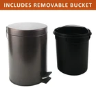 Stainless Steel Small Trash Can with Lid & Step Pedal - 5 Liters/1.3 Bronze Product Details Product Dimensions : 8 x 8 x 10.7 inches; 1.7 Pounds Item model number : 832140 Manufacturer : Zahari Home Country of Origin : China Brand: Zahari Home Capacity: 5 Liters Color: Bronze Opening Mechanism: Step-On Material: Stainless Steel Recommended Uses For Product: Indoor Room Type: Office, Bathroom, Kitchen, Bedroom, Living Room Special Feature: Cleanroom, Quiet Close Shape: Cylindrical Finish Type: Matte Removable Liner Bucket: This step trash can includes a removable liner bucket with handle for easy cleaning, making it convenient to maintain a spotless environment. The liner allows for hassle-free disposal in any bathroom trash can, kitchen garbage can, or office garbage can. Durable Design: Made from high-grade metal, our bathroom trash can with lid and garbage cans are built to last, unlike fragile plastic or ceramic alternatives. These cans are easy to clean with a damp cloth, ensuring durability and a sleek, long-lasting look. Universal Use: These trashcans are ideal for any space, whether it's your bathroom, kitchen, bedroom, or office. The garbage can with lid adds versatility, keeping spaces fresh and clean. Garbage Can with Lid: The modern and elegant design of this step trash can complements any home decor with dimension (10.75"x8.25") adding a touch of sophistication to your bathroom, kitchen, or office. Ideal Gift: The sleek bathroom trash can and kitchen garbage can make an excellent gift, adding style and functionality to any home. It's the good combination of practicality and modern design.