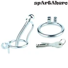 Stainless Steel Sounding Tube with Dual Rings 18mm Lockable Chastity Cage for Men