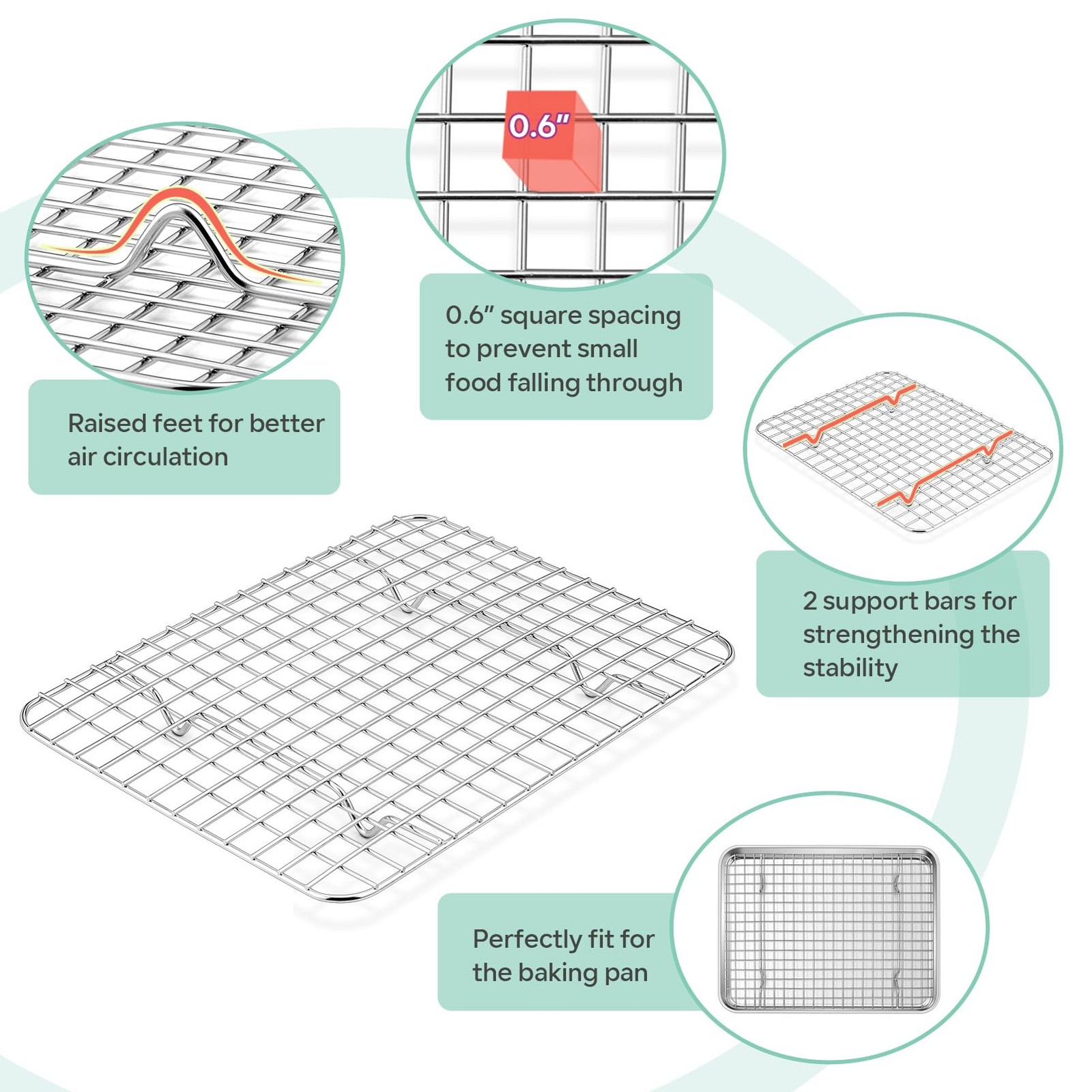 Stainless Steel Toaster Oven Tray and Rack Set Broiler Pan 10.5x8x1 Inch HEALTHY & STURDY: Toaster oven pan with cooling rack are made of pure stainless steel without any toxic or chemical materials, No worry about toxic coating flaking off into your food, No rusty and deformation resistance, With thick gauge and sturdy construction for using longer time TOASTER OVEN TRAY: The broiler pan is 10.5’’ x 8’’ x 1’’, Fits for most toaster oven, Smooth edges without sharp spot prevents from hurting your hands and pick up comfortably, 1 inch deep sides with roll edge helps avoiding food juice or grease spilling out, Keeps your oven clean COOLING GRID RACK: The 9.7’’ x 7.3’’ cooling rack with dense lines and 0.6” small grid spaced pattern to avoid the small food falling, 4 thick supporting feet raised the entire rack up by 0.75 inch, Allows air to circularly flow for baking food better, Welded firmly and 2 cross bars strengthen the stability of the rack DISHWASHER SAFE: Mirror polished surface reduces the possibility of sticking on the pan, Allows the food be released easily without sticking, Makes cleaning task more effortless, Both broiler pan and wire rack are effortless clean and dishwasher safe to save your labor and time MULTI-USE: A great replacement baking pan with rack set fits for small amount of cookies / breads/ meats / vegetables making, Helping you to deal with the personal baking tasks easier in the daily use, The baking rack not only be used with baking pan, but also can hold and cool the food separately after baking 10.5’’ x 8’’ x 1’’ Stainless Steel Toaster Oven Pan Tray Small Baking Pan with Cooling Grid Rack Wire Set of 2, are made of pure stainless steel, No toxic leaching or chemical chips fall into your food, Healthy for daily use. Not only ideal for baking cupcakes, vegetables, bacons, but also be used as serving tray, cookie tray, cooling rack and etc. Both the broiler pan and rack are dishwasher safe. Specification: Material: Pure Stainless Steel Craft: Mirror Finish, Sturdy Construction, Smooth Edge, 1 inch Deep Side Features: Healthy, Easy to Clean, Dishwasher Safe, Oven Safe Dimension: Pan: 10.5’’ x 8’’ x 1’’ Rack: 9.7’’ x 7.3’’ x 0.75’’ Why Choose Stainless Steel Toaster Oven Pan Tray with Rack? 1. Non-Toxic - Made of pure stainless steel without any toxic substance into your food, Healthy for daily use. 2. Smooth - Shiny and attractive mirror finish, Roll edges and round corners to comfortably hold and transfer conveniently. 3. Sturdy- Heavy duty and rust resistance, Feel solid and not easy to smash. 4. Baking Evenly - 4 x 0.75 inch supporting feet raise the rack up for better air circulation to make the food baked evenly. 5. Multipurpose - Baking trays and racks not only be used together, but also separately used. For baking cookies, jelly rolls, meats, vegetables, Racks for cooling/ decorating food. 6. Easy to Clean - All the pan and rack are dishwasher safe. Using Instruction: 1.Please wash the pan and rack with warm soapy water before your first using. 2.Please hand dry them after cleaning, stored in dry place for durability. 3.Please avoid sharp and rough tools to scratch the shiny surface of the pan. 4.Dishwasher safe. Shipping We offer FREE shipping on all orders! We ship within Three business days of payment, usually sooner. We use a selection of shipping services such as UPS, FedEx, USPS etc. We only ship to the lower 48 states, no APO/FPO addresses or PO Boxes allowed. Local pickups and combined shipping options are not provided at this time. Return You can return a product for up to 30 days from the date you purchased it. Any product you return must be in the same condition you received it and in the original packaging. Please keep the receipt. Payment We accept payment by any of the following methods: PayPal Please pay as soon as possible after winning an auction, as that will allow us to post your item to you sooner! Feedback Customer satisfaction is very important to us. If you have any problem with your order, please contact us and we will do our best to make you satisfied. Contact Us If you have any queries, please contact us via ebay. We usually respond within 24 hours on weekdays. Please visit our eBay store to check out other items for sale! Thank you for shopping at our store.
