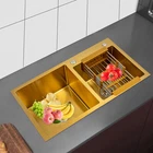 Gold Undermount Kitchen Sink, 80*45 cm Stainless Steel Kitchen Sink Double Bowls Description This 304 stainless steel sink is both stylish and functional. The gold color has a luxurious and shiny appearance, and it is made of high-quality stainless steel, which is sturdy and durable. 2 separate independent bowls with deep depth,a large capacity and a strong carrying capacity are enough to meet your daily washing needs. A good drainage system and a retractable draining basket provide you with a more convenient and cleaner kitchen environment. Key Features Build to Last: This sink is made of high-quality 304 stainless steel with a nano-coating process, which has good corrosion resistance , anti-abrasion and scratch resistance , and is sturdy and durable, ensuring a long service life. Stylish Appearance: This product is gold, giving people a sense of luxury and elegance. Its exquisite and stylish appearance, and smooth lines, make it suitable for most home styles, adding a special color to the kitchen. Large Capacity : Two large (left:15.75*16.54 inches, right: 11.81*12.99 inches) and deep (8.66 inches) sinks allow you to multitask and clean vegetables, fruits, plates, and cookware at one time without splashing, saving time. Strong Load-bearing Capacity: Thanks to its high-quality material, solid rectangular structure, and 3mm thickened panel, it has a weight-bearing capacity of about 198.42 lbs , making it confident for you to handle dishes on it. Good Drainage System: The X-shaped water guiding line and a large-diameter drain can guide water flow and form vortices to achieve rapid drainage without accumulating at the bottom. The special V and F shaped drain pipe drains faster and the standing water in it forms a natural barrier against insects and odors, providing you with a clean kitchen environment. Thoughtful Design: It has environmentally friendly rubber sound-deadening mats, which can effectively reduce the sound of running water. In addition, the product has an anti-condensation coating, which can effectively prevent condensation in winter and avoid moisture and water accumulation in the cabinet. Easy to Clean: With its simple structure and smooth surface, it is easy for you to clean it with a soft cloth(not included). Easy to Assemble : The complete range of mounting parts and the simple construction of the product allow you to install it quickly and accurately in a short time. Quality Service: We are honored that you have chosen our product. We have sufficient confidence in the quality of the product so that you can buy it confidently. But if you have any questions, you can contact our customer service, he will patiently answer and solve your problems. Details R-corner: Smooth R-corner not only enlarges the space, but also increases the beauty of the product, and it improves the safety of use. It also eliminates the dead corner of dirt accumulation for easy cleaning. Anti-overflow Outlet: The product has multiple holes for overflow, which drains water quickly and prevents water from overflowing out due to forgetting to turn off the faucet. Retractable Draining Basket: It can be used to drain fruits, vegetables, washed bowls and plates, etc. Application This product can be used to clean tableware, vegetables, fruits, and so on. It is widely used in kitchens, bathrooms, restaurants, school canteens, bars, dessert stores, coffee shops, hotels, garages, gardens, hotels, etc. Specifications Material: 304 Stainless Steel, Rubber Process: Nano-coating Color: Gold Style: Modern Shape: Rectangular Filtration Mode: Coarse Filter, Fine Filter Assembly Requirements: Yes Mount Type: Topmount, Undermount, Flushmount Stainless Steel Thickness: 3mm/0.12in Number of Bowls: 2 Overall Product Load-bearing Capacity: About 90kg/198.42 lbs Left Bowl Size: 40*42*22cm/ 15.75*16.54*8.66in Right Bowl Size: 30*33*22cm/11.81*12.99*8.66in Overall Product Size: 80*45*22cm/ 31.5*17.72*8.66in Pakage Size: 86*51*27cm/33.86*20.08*10.63in Gross Weight: 8kg/17.64lbs Net Weight: 7.5kg/16.53lbs Package Included 1* 304 Stainless Steel Sink 1* Drain Basket 1*Drain Pipe Notes Please check the size carefully before ordering. Please do not scratch its surface with sharp objects to obtain a longer service life. Please note that this package does not include the faucet. Please do not use strong acids or alkalis to clean items in the sink, and do not put hard objects or rusty metal in contact with the sink for a long time, keep the sink clean by cleaning the tank and drying it with a rag after each use. If you want to get a better installation result, we recommend that you hire a professional plumber to install it. Please allow the slight color difference caused by the shooting light and 1-3cm error due to manual measurement, and make sure you do not mind before you order. Brand Unbranded Type Double Sink Item Height / Item Length / Item Width / Room Kitchen Mounting Undermount Material Stainless Steel Bowl Height 22cm Color Gold Bowl Shape Rectangular Style Modern Number of Faucet Holes 2 Holes Shape Rectangular Assembly Required Yes