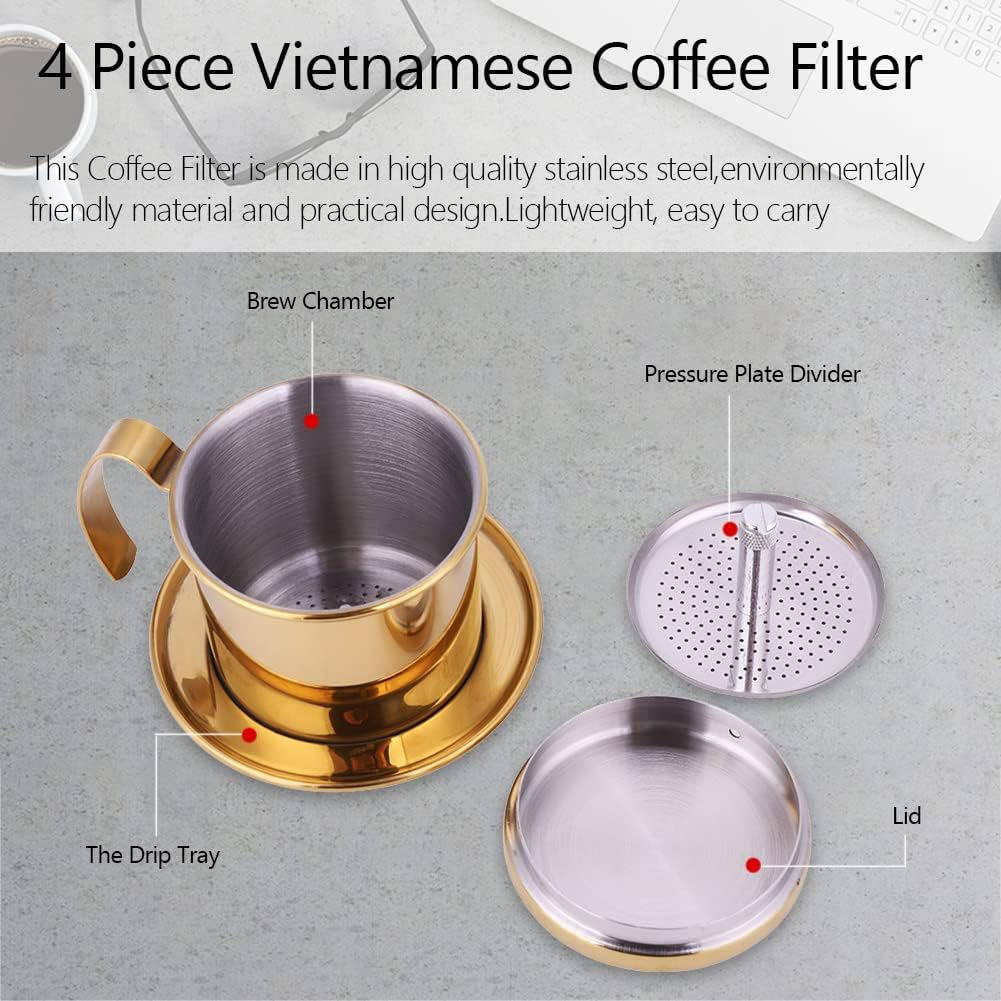 This stainless steel coffee filter is a game-changer! Beautiful gold finish, super sturdy, and brews rich, smooth Vietnamese coffee effortlessly. Perfect for home, travel, or office—super portable and easy to clean. Love the compact size yet solid build. Worth every penny for coffee lovers who enjoy authentic drip brew anytime, anywhere. Super happy with this purchase!