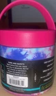 stainless steel lunch pot, lid is Pink container is blue, purple and pink.