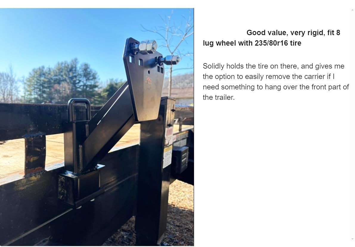 This spare tire carrier is a game-changer for trailer owners! The double-screw fixation keeps everything rock-solid with no shaking or loosening, even on rough roads. It fits most trailer frames and tongue widths up to 4 inches, plus accommodates nearly any lug pattern from 4 to 8 lugs. The powder coating adds durability against rust and weather. Installation was straightforward, and now my spare stays secure yet easily accessible. Perfect upgrade for utility trailers—no more worrying about tire mounts coming loose! The patent-pending design really shows in the improved stability. Highly recommend for hassle-free towing.