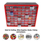Product details The 64 Drawer Storage Cabinet by Stalwart is an excellent organizational solution for your garage, home, or office. The container is portable and can be used on tables, countertops or desks, and is also wall mountable. Stalwart is committed to providing the consumer with the absolute best price and value on all our products, which we ensure by applying a rigorous quality control process. NOTE: This is an exclusive product of Stalwart and Only 64 Drawer Storage Cabinets by Stalwart to be genuine. IMPORTANT: Avoid buying counterfeit products and transacting with unauthorized sellers. Look for our logo on the packaging for every one of our products. Stalwart is a registered trademark protected by U.S. Trademark law and will be vigorously defended. IMPACT RESISTANT MATERIAL- Constructed from durable polypropylene, these storage drawers are made to last, and difficult to damage or break. The flexible and strong, see-through clear plastic drawers feature finger grip drawer pulls for easy opening. DESKTOP OR WALL MOUNTABLE- The storage box is portable and can be placed on any desk, table, or work surface. The sturdy plastic frame features keyholes on the back for convenient wall mounting in a closet, in a classroom, workshop or shed. MULTI-PURPOSE- With 64 compartments, this cabinet is ideal for storing and organizing everything from fishing tackle, office supplies, hardware like nuts, screws, and bolts, to crafting materials, beads, makeup, or jewelry. VERSATILE- These storage containers are perfect for any area of the house. Get one for your garage, office, kitchen, bathroom, or bedroom. It's the perfect organizational solution to keep accessories, pieces, or parts neatly stored and tidy. PRODUCT DETAILS- Material: Polypropylene. Overall Dimensions: (L)20 x (W) 6.25 x (H) 15.5, Drawer Dimensions (64 Each): (L) 2 x (W) 5.75 x (H) 1.5. 64 total drawers. More details Features Storage Brand Stalwart Manufacturer Part Number HW2200013 Assembled Product Weight 7.50 lbs Manufacturer Trademark Global LLC Color Red Assembled Product Dimensions (L x W x H) 20.00 x 6.25 x 15.50 Inches On Nov 21, 2024 at 01:58:17 PST, seller added the following information: