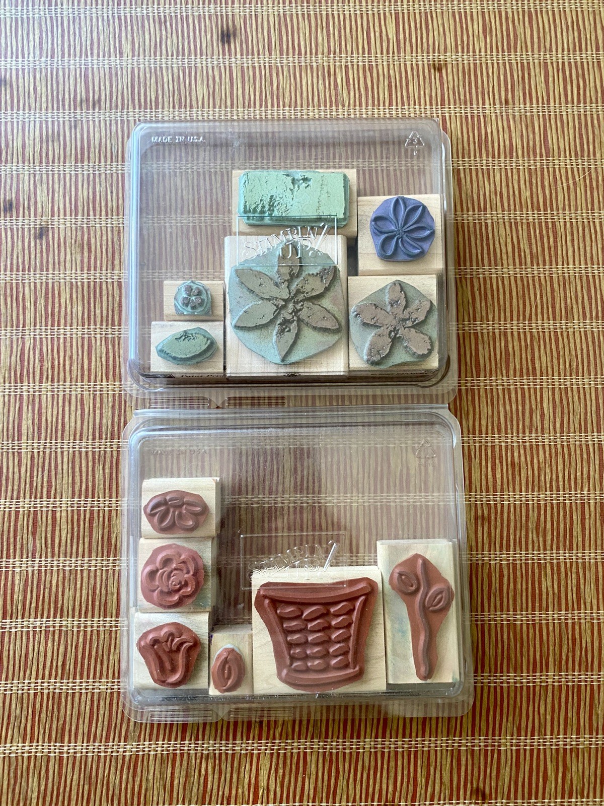 This product is a lot of 12 botanical floral bouquet wooden rubber stamp sets by Stampin' Up!. The stamps feature a theme of flowers and plants, making them perfect for crafting and scrapbooking projects. Each stamp is made of wood and rubber, providing durable and high-quality stamps for creating beautiful designs on paper and other surfaces. Stampin' Up! is a reputable manufacturer known for producing high-quality crafting products, making this set a valuable addition to any crafter's collection.