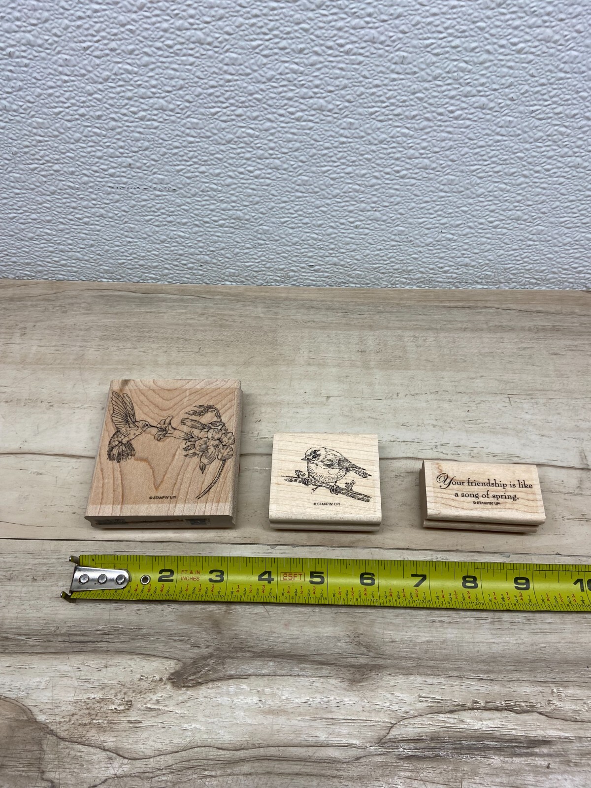 Stampin Up Spring Song Set Of 3 Wood Mounted Rubber Stamps.Very good used condition in original box. MAKE A BUNDLE AND SAVE ON SHIPPING WE OFFER COMBINED SHIPPING AND MULTI-ITEM PURCHASE DISCOUNTS.IF YOU HAVE ANY QUESTIONS, PLEASE LET US KNOW