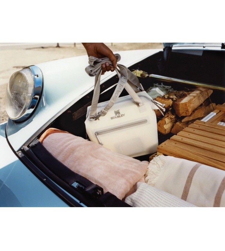 The Stanley All Day Julienne Mini Soft Cooler Bag and Lunch Box is a durable and stylish lunch container with a capacity of 7.4 quarts. Made of polyester material, this lunch box features a sleek design in a Dried Pine color, perfect for toting your meals on-the-go. With dimensions of 10 inches in height and 7.8 inches in width, this lunch box is the ideal size for storing and transporting your favorite foods. The Stanley brand ensures quality and reliability in keeping your food fresh and organized throughout the day.