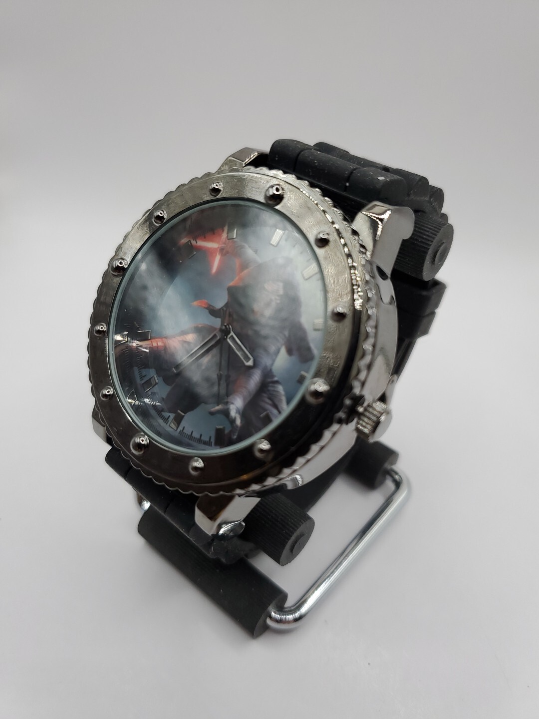 Embrace the dark side of time with the Accutime Star Wars Force Awakens Quartz Watch. Featuring a bold 50mm round stainless steel case with a black bezel, this timepiece is a statement for any casual ensemble. The multicolor dial adds a vibrant twist, showcasing the iconic imagery from the Force Awakens series that fans and collectors will appreciate. Comfort is key with a black silicone two-piece strap that ensures a secure and gentle fit throughout the day. Practicality doesn't compromise style, as this watch includes essential features like a 12-hour dial, seconds hand, and a push/pull crown for easy adjustments. The snap caseback provides durability while allowing a glimpse into the reliable quartz movement at work.