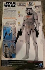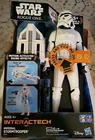 This is a 12-inch Star Wars Interactech Imperial Stormtrooper action figure from the movie Rogue One: A Star Wars Story." Manufactured in 2016 by Disney Hasbro, this original figure features talking capabilities, light-up effects, adjustable parts, and sound effects. The Stormtrooper comes with a gun and a jet pack accessory, making it a dynamic addition to any Star Wars collection. It is battery-powered and designed for ages 4 and up, with a whole body made of plastic in a white color scheme. NEW IN BOX See pictures.