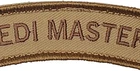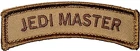 STAR WARS JEDI MASTER Color: Brown Size: 3.5 " x 1" Shape: Arc Type: Embroidered Back: Tactical/ Hook Fastener Compatible For EASY APPLICATION VF SKU 430 431 Tactical patch fully embroidered for backpacks, clothes, caps, bags and military uniforms. Hook backing
