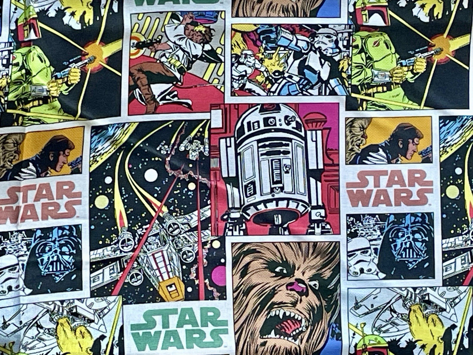 8 Yards Lucas Film Star Wars Comic Book Cotton Camelot Fabric Buyer will receive approximately 8 yards by 44” Wide. New from a smoke free home.