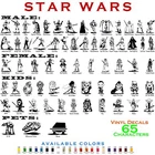 Create Your Star Wars Family - Vinyl Decal Stickers Sizes: Height: 5", Height: 6", Height: 7" Characters: Male : Anakin Skywalker, Boba Fett, C3po, Captain Phasma, Chewbacca, Clone Trooper, Darth Maul, Darth Vader, Finn, General Grievous, Han Solo, Imperial Guard, Imperial Officer, Imperial Snow, Jabba the Hutt, Jango Fett, Jar Jar Binks, Kamen Rider, Kylo Ren, Luke, Mace Windu, Obi Wan, Poe Dameron, Qui Gon Jinn, Scout Trooper, Stormtrooper, The Emperor, Tie Pilot, Tusken Raider; Female : Ahsoka Tano, Clone Trooper, Jaina Solo, Mara Jade, Maz Kanata, Officer Trooper, Padme, Princess Leia, Queen Amidala, Rey, Tusken Raider; Kids : Ahsoka, Anakin Skywalker, BB-8, C-3po, Chewbacca, Darth Maul, Ewok, Finn, Jabba The Hutt, Jango Fett, Jar Jar Binks, Jawa, Kylo Ren, Luke Skywalker, Obi Wan, Princess Leia, Queen Amidala, 2D2, Rey, Stormtrooper, Watto, Yoda; Pets : AT-AT, Millennium Falcon, Mouse Colors: 21 (see the picture) How to order other colors: Place your order and leave us a note with your color preference. (Without your note a sticker will be mailed in the default color) Default Color - BLACK Description: High quality long life vinyl decal with clear application tape for easy installation. Measurement is of the decal at its widest point. This sign grade vinyl decal will stick directly to doors, windows, bumpers and walls. Decal has no background, the white area in the photo is cut out and will show the background where it is applied. Below are some specs of the vinyl: Self adhesive Will not harm your paint or natural finish Can be applied and reapplied for desired look Water proof and stain resistant Indoor life of over 8 years Outdoor life of over 5 years UV protected Can also be used with a heat gun or household blow drier for shaping Very flexible and stretchable Super thin (0.2mm) to fit in most tight spots or corners (3M 94 primer is recommended for curves & corners) Can be used for other projects other than automotive Super easy to use Low cost compared to a paint job! Instructions: Rub the sticker to be sure the transfer tape is properly attached to the sticker. Clean and dry the chosen area. Stickers will stick best to clean flat surfaces. Remove the wax backing slowly making sure the sticker stays attached to the transparent transfer tape Carefully place the sticker to the wanted area. Rub the sticker from one side to the other, removing any air bubbles. Use an object like a card to make sure the entire sticker is fully attached to the surface. Slowly remove the transfer tape, making sure no part of the sticker remains on the transfer tape. Check for air bubbles. In most cases air bubbles can be worked to the edge of the sticker. Payment/Shipping/Returns/Refunds: Most orders are shipped within 24 hours, Monday-Saturday shipping! Standard shipping in the US (no tracking is provided) USPS First Class tracking # provided, and Priority shipping is offered for an additional cost. Make sure your address is correct, if a decal is returned to us for an undeliverable address, buyer will pay shipping to resend the decal! You have 7 days to contact us and 30 days to return it from the date it was received. All returned items have specific reason for the return, and your eBay ID. We will refund YOUR FULL WINNING BID AMOUNT, upon receipt of the item in its original condition and packaging with all components and accessories included, AFTER BOTH Buyer and Seller cancel the transaction from eBay. Please note that delays may occur due to post office issues, customs & holidays. Weekends are not business days. We are not responsible for any address information that is insufficient or incorrect.