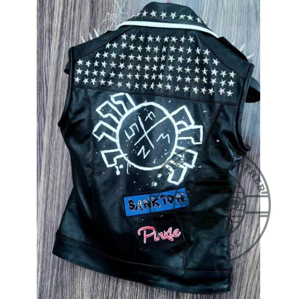 Personalize: Yes Type: Jacket Style: Biker Occasion: Business, Casual, Formal, Party/Cocktail, Travel Insulation Material: Polyester Department: Women Fabric Type: Fleece Size Type: Regular Theme: Biker Lining Material: Silk Size: All Sizes Available Color: Black Garment Care: Dry Clean Only Closure: Zip Jacket/Coat Length: Mid-Length Handmade: Yes Country/Region of Manufacture: Pakistan Outer Shell Material: Leather Features: All Seasons Fit: Regular Sleeve Length: Short Sleeve Brand: Handmade Pattern: Solid Season: Fall, Spring, Summer, Winter Vintage: Yes Accents: Studded