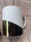 Pre loved so some spots of coffee stains. Pictured. This Starbucks mug set is a must-have for any coffee lover, featuring a stylish matte white finish with an asymmetric metallic gold design. The set includes two 14oz mugs, perfect for enjoying your morning coffee or tea. The mugs are an original Starbucks product and feature the iconic Starbucks logo. The brand is known for its high-quality products, and this set is no exception. The mugs are in great shape and have been used so some signs of wear and tear. They are perfect for collectors or those who want to add a touch of style to their daily coffee routine.