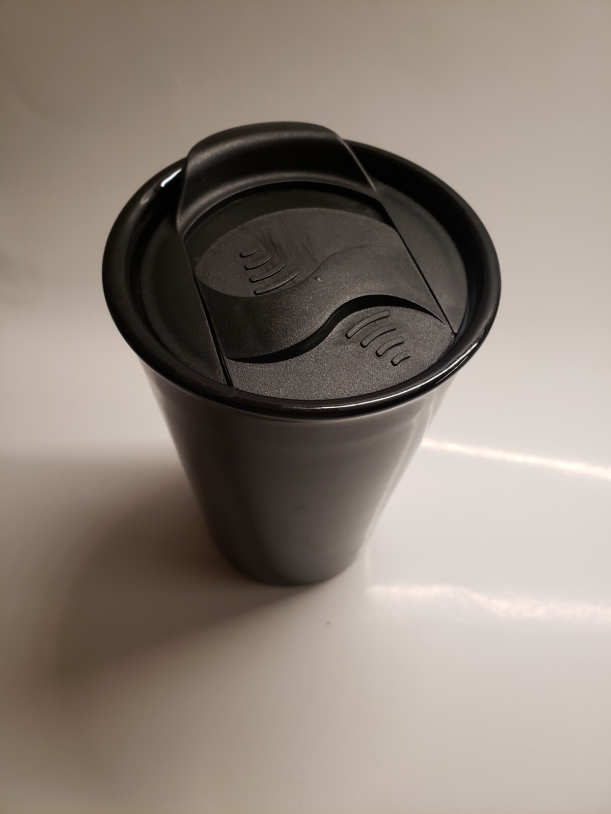 Love this stylish and sturdy travel mug! The perfect size for my morning coffee, keeps drinks warm, and the lid prevents spills. The sleek black design looks great, and the ceramic feels premium. Super easy to clean too—highly recommend!