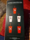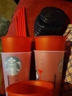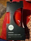 The Starbucks Campers Collection Reusable Cold Cups feature a multi-color design with a coffee & tea theme. These cups are branded with Starbucks and are suitable for cold beverages. They are likely manufactured in China and are a part of the collectibles and advertising categories.