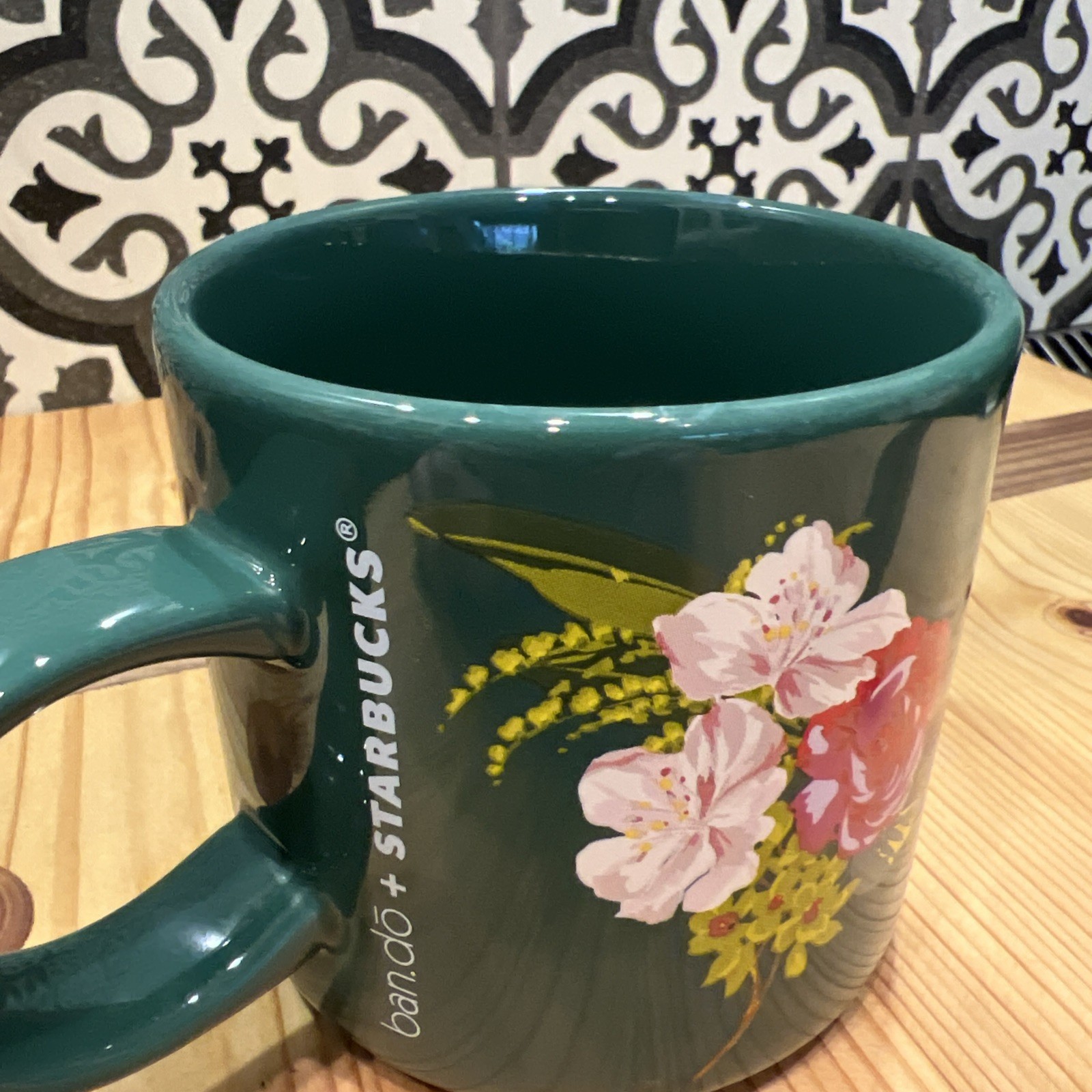Starbucks limited edition Ban.do green floral ceramic mug in great preowned condition. 12 oz perfect addition to your collection.