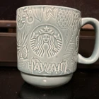 The product is a Starbucks Hawaii Blue Embossed Coffee Mug Cup, with a volume of 12 oz and a ceramic material. It features a left-handed and right-handed design, with a blue interior color and an original creation date of 2022. The mug showcases a Starbucks theme, specifically related to coffee and tea, and is identified as an original Starbucks collectible item. Made in China, the mug is adorned with a sign advertising design and does not come with a box.