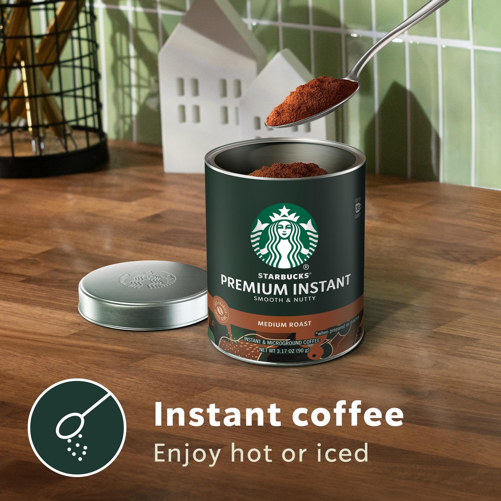 Starbucks Premium Instant Coffee, Medium 3.17 Ounce (Pack of 1), Roast Description Try the smooth and delicious taste that’s stirring up instant ground coffee. Starbucks Premium Instant Coffee is what a cup of instant coffee should taste like. Starting your day off right is as easy as stirring this delicious premium coffee into hot or iced water and enjoying. Each tin of Starbucks Medium Roast Premium Instant Coffee makes up to 35 smooth and delicious cups. Created by Starbucks gourmet coffee experts using the same high-quality Arabica coffee beans brewed in Starbucks cafés, Starbucks Dark Roast has a smooth mouth-feel, with notes of chocolate and nuts. We carefully roast the beans, capturing the exceptional aroma and premium taste, so you can enjoy a delicious Starbucks microground coffee at home. Stir up your coffee routine in an instant with Starbucks Premium Instant Coffee. Nestlé uses Starbucks trademarks under license. © 2025 Starbucks Coffee Company. Features: PREMIUM INSTANT COFFEE: Enjoy the Starbucks coffee you love at home with a tin of Starbucks Medium Roast Premium Instant Coffee—scoop your way up to 35 cups of oh so delicious instant coffee BALANCED: Starbucks Medium Roast Premium Instant Coffee is a balanced coffee—well-rounded and medium-bodied with a smooth mouth-feel, featuring notes of chocolate and nuts EASY TO PREPARE: It’s easy to make a smooth and delicious cup of instant hot or iced coffee—simply add instant coffee, pour water, stir and enjoy premium-tasting instant coffee at home CRAFT IT YOUR WAY: Starbucks Premium Instant Coffee lets you adjust how much coffee you add, so you can instantly stir up a cup, just the way you love it HOT OR ICED COFFEE: Enjoy your coffee your way—brew it hot or over ice for a refreshing pick-me-up. Add your favorite coffee creamer for a personalized touch, or enjoy balanced, black coffee for a satisfying sip any time of day CAFÉ QUALITY: Starbucks adheres to the highest quality standards—shipping you the same artfully crafted Arabica coffee beans brewed in Starbucks cafés PERFECT FOR ON THE GO: Whether at work, traveling or camping, Starbucks Premium Instant Coffee makes it easy to enjoy rich coffee anytime, anywhere—no brewer required Product Details: Handling We will ship all orders within 1 business day of payment. Delivery We Do Not Ship Outside of the Continental US. Return Policy All items qualify for returns within 30 days of receipt. Buyer is responsible for return shipping on any item that is not damaged. Feedback We take our reputation seriously, we buy and sell online, so we understand the value of trust. If you are unsatisfied with your order, please contact us and we will work with you to resolve it to your satisfaction.