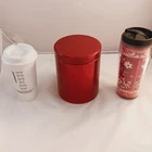 This Starbucks red metallic canister is a must-have for any coffee and tea lover out there! With a size of 6 inches by 5 inches, this canister comes with a cup and mug and is perfect for storing your favorite beverage. The canister is designed with the iconic Starbucks logo and is made in China. This collectible advertising item is an original piece and is perfect for any Starbucks fan. The red color of the canister adds a pop of color to any kitchen or office. Get your hands on this unique piece of Starbucks memorabilia today!