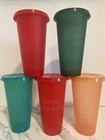 Lot 5 Starbucks Plastic Cups Reusable Holiday Christmas Stackable With Lids Pre-Owned but in very good condition. See photos for best representation. This set DOES NOT include straws. For cold beverage only. Thank you for looking and supporting my small business!