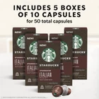 Starbucks by Nespresso Dark Roast Italian Roast Coffee (50-count single serve capsules, compatible with Nespresso Original Line System) STARBUCKS coffee capsules by NESPRESSO, roasty with sweet notes Sweet and intense, dark Italian roast without the smoky edge Coffee capsules compatible with NESPRESSO coffee machines Enjoy your STARBUCKS favourites at home 100% Arabica coffee. A cup of coffee with depth of flavour to enjoy throughout the day Committed to 100% Ethical Coffee Sourcing in partnership with Conservation International This is STARBUCKS quintessential dark roast, expertly crafted to bring out sweetness and intensity. It showcases the precision and skill of our roasters, who created a coffee that's slightly darker than our Espresso Roast but without a smoky edge. A great cup of coffee, it has a depth of flavour that holds its own with cream and sugar.We use the same high quality 100% Arabica beans as our coffeehouses.STARBUCKS by NESPRESSO coffee capsules are compatible with NESPRESSO coffee machines.Enjoy your STARBUCKS favourites at home.STARBUCKS and the Starbucks logo are used under license by NESTLE. Shipping We offer FREE shipping on all orders! We ship within Three business days of payment, usually sooner. We use a selection of shipping services such as UPS, FedEx, USPS etc. We only ship to the lower 48 states, no APO/FPO addresses or PO Boxes allowed. Local pickups and combined shipping options are not provided at this time. Return You can return a product for up to 30 days from the date you purchased it ONLY if it's in the original condition. The product cannot be used or open. Any product you return must be in the exact same condition you received it and in the original packaging. Please keep the receipt. Feedback Customer satisfaction is very important to us. If you have any problem with your order, please contact us and we will do our best to make you satisfied. Contact Us If you have any queries, please contact us via ebay. We usually respond within 24 hours on weekdays. Please visit our eBay store to check out other items for sale! Thank you for shopping at our store.