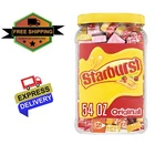Stock up on everyone's favorite unexplainably juicy chewy candy. This bulk candy jar of Starburst Fruit Chews Candy is perfect for stocking the pantry at home or at work. Each fruit chew is packed with a juicy burst of fruit flavor. Have a friend that swears pink Starburst are the best? A coworker who only eats red Starburst fruit chews? A family full of orange Starburst fans? We know you know someone who enjoys the zest of yellow Starburst candy. Please them all with this Starburst candy bulk assortment mix, featuring plenty of their favorite flavors. Each jar contains the perfect mix of strawberry, cherry, orange, and lemon flavors. Make sure to pick up enough Starburst candy for party bags or to use as pinata candy. No celebration is complete without a candy buffet full of fruity chewy candy. Fill your favorite candy dishes with bulk individually wrapped Starburst candy. You'll love always having a chewy candy treat on hand with a burst of unexplainably juicy flavor. Starburst fruit chews are a gluten-free candy making them a perfect candy to share with everyone. Pass them around to Trick-or-Treaters, no Halloween candy assortment is complete without Starburst chewy candy. With bulk Starburst Original Fruit Chews Candy, there are endless ways to add a burst of unexplainably juicy flavor to all of life's candy-filled moments. Product Features: Bulk Jar Features your favorite Starburst Flavors, including strawberry, cherry, orange and lemon Perfect for candy buffets, piñatas and parties Stock the office pantry with a bulk candy jar of Starburst Fruit Chews Gluten-free, fruit-flavored candy chews with a soft, chewy texture Includes one 54 oz. jar of Starburst Original Fruit Chews Candy Ingredients: Sugar, Corn Syrup, Hydrogenated Palm Kernel Oil; Less than 2% of: Citric Acid, Tapioca Dextrin, Gelatin, Apple Juice from Concentrate, Modified Corn Starch, Natural and Artificial Flavors, Colors (Red 40, Yellow 5, Yellow 6, Blue 1)