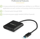 Store New Arrivals Add to Favorite View Feedback Contact Startech.Com USB 3.0 to Dual HDMI Adapter, USB to 2X HDMI Monitor Converter Description Item model number USB32HD2 Item dimensions L x W x H 12.4 x 2.6 x 0.6 inches Color Black Product Dimensions 12.4 x 2.6 x 0.6 inches Country of Origin Taiwan Compatible Devices Windows 8/8.1, Windows 7, Windows 11, Windows 10 Connector Type HDMI, USB Type A Item Weight 1.97 ounces Department Audio, Video Adapters Manufacturer StarTech.com Is Discontinued By Manufacturer No Specific Uses For Product Personal and business productivity Size 2-port COMPATIBILITY WARNING: USB 3.0 to HDMI video adapter is only compatible with Windows and does not support macOS, ChromeOS, Linux or Windows ARM; You need administrator privileges to install the required drivers; Please read the instructions carefully INCREASE YOUR PRODUCTIVITY: USB to Dual HDMI monitor adapter lets you extend your desktop by adding up to two HDMI monitors to your laptop or desktop computer; Ideal for your workstation setup in the office or working from home 4K SUPPORT: Enjoy exceptional USB video performance with this USB to HDMI dongle; Video adapter support video resolutions up to 4K (3840x2160) at 30Hz PERFORMANCE: USB 5Gbps to Dual HDMI hub converter (1x USB-A male to 2x HDMI female connector) offer 1x 4K 30Hz (UHD) and 1x 1080p 60Hz Video, 2ch audio (through HDMI), HDCP 1.4 and 9.8in (25cm) cable length THE IT PRO'S CHOICE: Designed and built for IT Professionals, this USB 3.0 to HDMI video adapter is backed for 3-years, including free lifetime 24/5 multi-lingual technical assistance This USB 3.0 to Dual HDMI Adapter lets you add two independent HDMI displays to your computer using a single USB 3.0 port. One of the HDMI ports can output resolutions up to 4K, while the other can output resolutions up to 1920 x 1200. Adding more displays to your workstation can be difficult, especially if your computer does not support MST or offer many external video ports. This USB to dual HDMI adapter features two video outputs, boosting your productivity by giving you more screen space to work from. One of the ports on this USB video adapter supports resolutions up to 4K at 30Hz, enabling you to connect a 4K monitor to your computer, even if your laptop or desktop video card doesn’t natively support 4K output. The USB to HDMI 4K adapter lets you extend or mirror your primary display onto an Ultra HD monitor or television. Using the high-bandwidth USB 3.0 interface, this USB 3.0 to HDMI adapter enables smoother scrolling through documents, higher resolutions and better overall performance than earlier USB adapters. This USB 3.0 to Dual HDMI Adapter is backed by 3-year warranty and free lifetime technical support. ABOUT US We offer the best prices around on high quality products. Our E-store includes media such as books, movies, music and games while offering electronics, toys, sporting apparel, clothing, tools, general home, garden items and more. SHIPPING We are always working hard to ensure your package arrives as soon as possible. Please understand that some factors like weather, high postal traffic, and the performance of shipping companies are outside of our control. We offer free shipping to the lower 48 states and ship within 2 business days of payment, usually sooner. We do not accept P.O. Boxes. Please provide a physical address. RETURNS We offer a 30-Day Return Policy on items which you are not completely satisfied with. You have the option for a full-refund or an exchange of the item. No returns are available on items shipped outside of the USA. PAYMENT We accept PayPal. CONTACT US This page content is yet to come Please ad us to your favorite seller and visit again later Thank You CUSTOMER SATISFACTION We try our very best to make sure every customer is completely satisfied. If there's a problem, message us! We're happy to help.