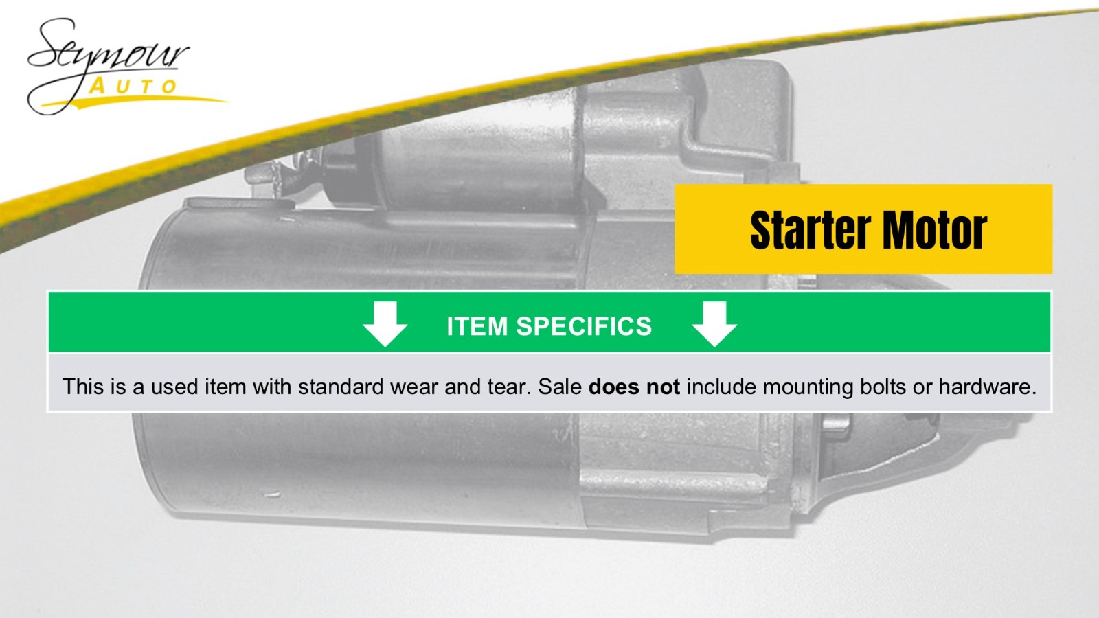 Hollander Welcome to our eBay store! Starter Motor Convertible Fits 05-09 AUDI A4 1170961 Description Donor Vehicle Model : PASSAT Year : 2004 Mileage : 165000 (0 = not available or unknown) Stock Number : 028305 Notes : This Part Will Fit These Makes And Models With These Options AUDI A4 05 1.8L, Conv, from VIN 005701, AT AUDI A4 05 1.8L, Sdn, AT, from VIN 030001 AUDI A4 05 1.8L, SW, AT, from VIN 030001 AUDI A4 05-08 2.0L, AT AUDI A4 06 1.8L, AT AUDI A4 09 Conv, 2.0L, AT PASSAT 04 1.8L (turbo gas), from VIN 200001, AT PASSAT 05 1.8L (turbo gas), AT About Us Payment Shipping Returns Warranty About Us We are a locally owned business with over 70 years of experience in the automotive industry with an extensive collection of used car parts and accessories for thousands of different vehicles. Our knowledgeable and caring staff work hard every day making sure all of our parts are high quality and functional to fit your needs. We are happy to verify fitment for you prior to purchase via your vehicle’s VIN (Vehicle Identification Number). Please contact us with any questions prior to purchasing. Orders are sent to the shipping department throughout the day therefore we cannot guarantee adjustments to orders after payment is received. Payment Payment details: Please contact us with any questions prior to purchasing. Orders are sent to the shipping department throughout the day therefore we cannot guarantee adjustments to orders after payment is received. All orders must be paid in full prior to shipment. Payments are processed through eBay by eBay. If payment is not received within a reasonable time from when the order is placed, it will be cancelled without notice. All purchase prices are final. No price match or discount can be made while an item is awaiting payment. Shipping Shipping Details: FREIGHTED ITEMS MUST BE SHIPPED TO A COMMERCIAL ADDRESS WITH A LOADING DOCK AND A FORKLIFT, ABLE TO REMOVE THE PALLET FROM THE TRUCK. WE ALSO COULD FREIGHT TO A LOCAL FREIGHT TERMINAL. PLEASE CONTACT US FOR RATES ON FREIGHTED ITEMS. Items are shipped after being paid in full. We only ship to US addresses within the continental 48 states. Shipping to AK, HI and PO Box's require a special rate and are subject to additonal charges. All parts listed with Free Shipping have a one day handling time and may not be picked up by the carrier the same day the part is ordered. Any estimated delivery dates provided are only estimates and are not guaranteed to be accurate. We are not responsible for any delays with UPS, Fed-Ex or USPS. We must be contacted same day if an item is received damaged. All address changes must be completed before the part is shipped. Address changes that take place after the part has been shipped are subject to an address change fee. Overnight and expedited shipping options are available for an additional cost. All parts listed as, Pick Up Only , can be shipped if the shipping cost is covered by the buyer. All parts listed as, Pick Up Only , will be held at Seymour Auto Wrecking (107 New Haven Rd, Seymour CT 06483) for the buyer. International orders are shipped via eBay’s Global Shipping Program. We are not responsible for any shipping charge associated with eBay's Global Shipping Program. We are unable to change the delivery address on all orders shipped through eBay's Global Shipping Program. eBay must be contacted directly. We are not responsible for any delays or issues reagrding any item purchased and shipped through eBay's Global Shipping Program. Returns All parts sold have a standard 30-Day return window. Return Details: We must be contacted within 30 days of the carrier provided delivery date for the return to be accepted. No return wil be accepted if contacted after 30 days from the carrier provided delivery date. We may require more information reagrding a return request. ex: pictures, receipts, videos, etc. A free return label will not be provided for remorse return reasons. ex: changed mind, ordered by mistake/by accident, didn't like it The buyer must ship the return within 21 days of receiving a return label or starting a return. All returns must be sent in the appropriote sized box with adequate packaging. Any return received damaged may be eligible for a refund deduction. All returns made must be occompanied with a return reason. All returns that are received without a reason will not be processed. If a return label is issued by eBay, we are not responsible for reimbursing the buyer for the cost of the label. In the event the part returned does not match the original part sent, a case will be opened up with eBay. Warranty All parts come with our standard 6-month warranty. Please contact us for more details prior to ordering. The warranty begins as soon as the buyer takes possession of the part. Standard 6-Month Warranty: If a part is proven to be defective within the 6 month warranty period, a replacement or refund will be sent at our discretion. We are not responsible or liable for any incidental or consequential loss or damage. We will require more information reagrding a warranty request. ex: pictures, receipts, videos, etc. No warranty claims or reimbursement on labor. All body parts are sold as is. Any part that is damaged or altered by the buyer will not be eligible for warranty or return. No warranty claim can be made based on color or trim package. We are not responsible for the buyer's error. ex: Accidental orders, late address changes. We do not offer an extended warranty with eBay. If you experience any issue with your part, please contact us prior to attempting to repair or remove the part. Failure to do so will void the warranty. We make no claim as to the suitability of any part for any particular purpose. The buyer is responsible for determining the suitability of the part purchased for its intended purpose. In the event an incorrect part is shipped, please contact us immediatley so an exchange can be processed. Copyright © 2022, All Rights Reserved. Te