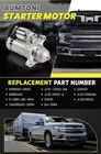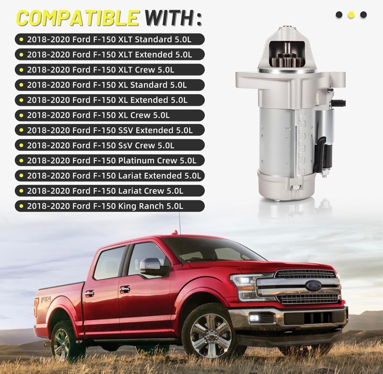 #3321 Starter Motor Compatible with 2018-2020 Ford F-150 V8 5.0L, Replace JL3Z-11002-A 438000-3950 Brand Aumtoni Material Aluminum Item Weight 7.6 Pounds Manufacturer Aumtoni 【Compatible with】Starter Motor Fits for 2018 2019 2020 Ford F-150 XL/XLT Standard/Extended/Crew, for F-150 SSV Extended/Crew, for F-150 Platinum Crew, for F-150 Lariat Extended/Crew, for F-150 King Ranch 5.0L.NOTE: Please note the suitability of your carmodel before purchasing 【Replacement Part Number】:438000-3950, SR8504X, 0-986-UR1-904, TN438000-3950, JL3T-11000-AB, JL3Z 11002-A,34031, SA-1084,S34031, JL3T11000AB, JL3Z11002A 【Durable and Long-lasting】 Perfectly matched with the vehicle, and can be installed easily . This starter is crafted from premium materials for exceptional durability. Its thoughtful design ensures reliable performance, even in demanding operating conditions 【Included With Purchase】The Package Only Includes One New Start Motor .We will provide excellent service and do our best to give you a satisfactory answer. Our products are mechanically tested before leaving the factory 【Product Functions】This brand new start motor converts electrical energy from the battery into mechanical motion via an electromagnetic solenoid, engaging the pinion gear with the engine flywheel to start the engine quickly and efficiently What's in the box Start Motor