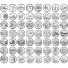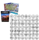 The 50 States Quarters Program featured each of the U.S. States on unique designs from 1999 to 2008. This set also includes 6 territory quarters from the U.S. Territories Program. The 50 State Quarters were released by the United States Mint every ten weeks in the same order that the states ratified the constitution. These coins are in remarkable, uncirculated condition and truly unique as they are no longer available from the US Mint. Each quarter commemorates one of the 56 states and territories with a unique design based on its history, traditions and symbols. This beautiful state quarter set is perfect for a hobbyist or experienced collector. The set of 56 uncirculated quarters come presented in a display folder for secure protection and for showing off this spectacular collection to others. State Quarter Designs The obverse of each State Quarter features the same design - a portrait of George Washington. The design is similar to the previous design of the Washington Quarter series (1932 – 1998). It bears four inscriptions, some of which used to be on the reverse of the quarter. The obverse inscriptions are: “United States of America,” “Liberty,” “In God We Trust,” and “Quarter Dollar.” The reverse of each State Quarter carries a design emblematic of one of the 50 States and 6 U.S. Territories. The authorizing legislation provided some basic guidelines for the design. Each quarter must bear a dignified design of which the citizens of the United States can be proud. No frivolous or inappropriate designs should be selected. In addition, the reverse design cannot use a head and shoulders portrait or bust of any person living or dead. No living person may be included in a design. Inscriptions typically found on all State Quarter reverses include the state name, statehood date, date of mintage, and “E Pluribus Unum.” 1999 State Quarters Delaware State Quarter The Delaware Quarter was the first coin in the State Quarter series. It was released on January 4, 1999 and features the famous historical figure Caesar Rodney on horseback. Pennsylvania State Quarter The Pennsylvania Quarter was the second coin in the State Quarter series. It was released on March 8, 1999 and features the statue “Commonwealth” and the outline of the state. New Jersey State Quarter The New Jersey Quarter was the third coin in the State Quarter series. It was issued on May 17, 1999 and features a scene of George Washington crossing the Delaware River. Georgia State Quarter The Georgia Quarter was the fourth coin in the State Quarter series. It was released on July 19, 1999 and features the Georgia peach. The quarter also contains a collection of symbols related to the state including the state tree, state motto, and an outline of the state. Connecticut State Quarter The Connecticut Quarter was the fifth coin in the State Quarter series. It was released on October 12, 1999 and features the Charter Oak of Connecticut. 2000 State Quarters Massachusetts State Quarter The Massachusetts Quarter was the sixth coin in the State Quarter series. It was issued on January 3, 2000 and features a Colonial Minuteman. Similar to the design for the previous year’s Delaware Quarter, this design brings to mind images from the Revolutionary War period. Maryland State Quarter The Maryland Quarter was the seventh coin in the State Quarter series. It was released on March 13, 2000 and features the Maryland Statehouse. This was the first State Quarter design to feature a detailed famous building. South Carolina State Quarter The South Carolina Quarter was the eighth coin in the State Quarter series. It was released on May 22, 2000 and features a collection of symbols important to the state. The state flower, state bird, state tree, and an outline of the state are all included. New Hampshire State Quarter The New Hampshire Quarter was the ninth coin in the State Quarter series. It was released on June 21, 2000 and features a natural rock formation. This formation is known as “The Old Man of the Mountain.” Unfortunately, it crumbled several years after the quarter’s release. Virginia State Quarter The Virginia Quarter was the tenth coin in the State Quarter series. It was issued on October 16, 2000 and features three ships – the Susan Constant, Godspeed, and Discovery, bringing settlers to Jamestown, the first permanent English settlement in America. 2007 marked the 400th anniversary of the settlement. 2001 State Quarters New York State Quarter The New York Quarter was the eleventh coin in the State Quarter series. It was released on January 2, 2001 and features the Statue of Liberty superimposed over an outline of the state along with the inscription "Gateway to Freedom." North Carolina State Quarter The North Carolina Quarter was the twelfth coin in the State Quarter series. It was issued on March 12, 2001 and features a depiction of Wilbur and Orville Wright’s First Flight. The Wright Brothers made their historic flight in Kitty Hawk, North Carolina. Rhode Island State Quarter The Rhode Island Quarter was the thirteenth coin in the State Quarter series. It was released on May 21, 2001 and features a vintage sailboat. The sailboat is depicted in Narragansett Bay, Rhode Island with the Pell Bridge in the background. Vermont State Quarter The Vermont Quarter was the fourteenth coin in the State Quarter series. It was released on August 6, 2001 and features maple trees with sap buckets in the forefront. Kentucky State Quarter The Kentucky Quarter was the fifteenth coin in the State Quarter series. It was issued on October 15, 2001 and the theme is the state song “My Old Kentucky Home.” Depicted is the stately mansion, Federal Hill and a thoroughbred racehorse positioned behind a fence in the foreground. 2002 State Quarters Tennessee State Quarter The Tennessee Quarter was the sixteenth coin in the State Quarter series. It was released on January 2, 2002 and celebrates the State’s rich musical heritage