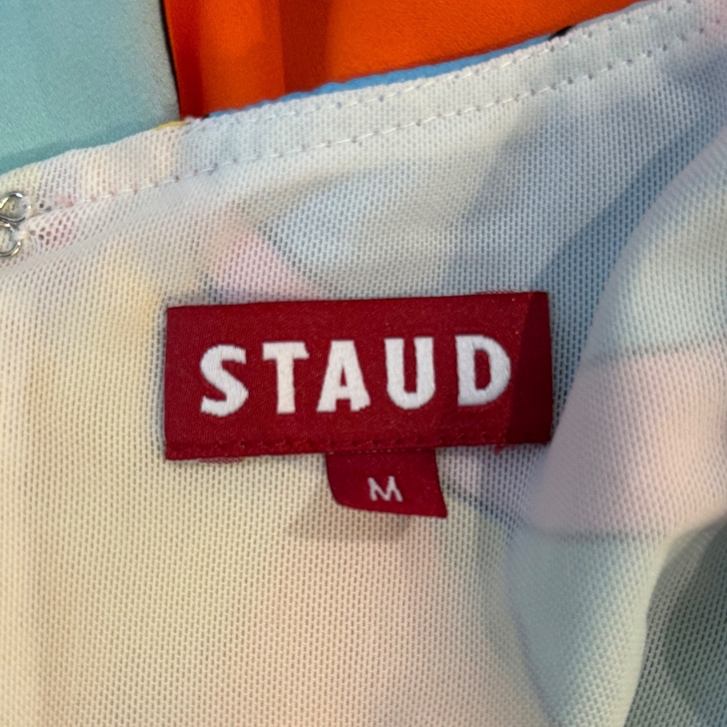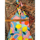 Radiate vibrant energy in this Staud Kai halter midi dress, a masterpiece of playful design. The eye-catching citrus swirl print, a kaleidoscope of sunny yellows, bright oranges, soft pinks, and cool blues, instantly uplifts your spirits and commands attention. A flattering halter neckline gracefully frames your shoulders, while the cinched waist with its self-tie sash accentuates your silhouette, creating a beautiful, flowing A-line skirt that dances with every step. The open back design adds a touch of chic allure, making this dress perfect for a summer garden party, a beachside brunch, or a vibrant vacation getaway. Style: Maxi, Sundress Dress Length: Long Department: Women Sleeve Length: Sleeveless Pattern: Geometric Occasion: Casual, Party/Cocktail Fabric Type: Woven Theme: Colorful, Designer, Nature Neckline: Halter Season: Summer, Spring Sleeve Type: Strapless Closure: Zip Accents: Strap, Buckle Keywords: Staud dress, halter neck, midi dress, citrus print, fruit dress, summer dress, vacation dress, party dress, statement dress, bold print, flowy dress, designer dress, resort wear
