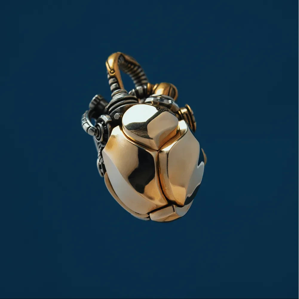 Anatomical Heart Parameter Material: Brass & White Bronze Width: 0.86" / 21.9mm Height: 1.46" / 37.32mm Weight: 1.16oz / 33g ABOUT Kinetic Motion Design: The pendant features a unique push-trigger system hidden in the aorta, animating the heart in lifelike motion, making it not just jewelry but a dynamic piece of wearable art. Symbol of Unbreakable Love & Resilience: Combining the heart's symbolism of love and the mechanical elements representing strength, this pendant embodies enduring passion, unbreakable bonds, and the eternal drive to keep moving forward. Intricate Craftsmanship: Made from 14 meticulously hand-assembled brass and white copper components, this pendant showcases an extraordinary level of detail, with every gear, valve, and rivet adding to its mechanical beauty. Polished Brass & White Copper Finish: With a radiant polished finish, this pendant stands out not only for its mechanical intricacy but also its refined aesthetic, offering a sleek and luxurious touch to any collection. Ideal for Steampunk and Mechanical Art Enthusiasts: A perfect Christmas gift for lovers of steampunk, mechanical beauty, and unique designs, this pendant appeals to those who appreciate art, engineering, and the fusion of the two. As each mechanical heart is handcrafted, the opening angle may vary slightly from piece to piece. This piece is designed to mimic the motion of a beating heart. Pressing the button will not fully open the heart, but you may manually open all the valves to view the internal structure.