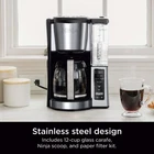 Product details Ninja Coffee Brewer, Glass Carafe, CE250 is a 12-cup programmable coffee maker with custom brew strengths and a hotter brewing advanced boiler to make hot, flavorful, and never-bitter coffee. From a small batch (1-4 cups) to a full carafe, Classic or Rich strengths, you can expect the same great taste. Enjoy ultimate convenience with 24-hr delay brew, an adjustable warming plate, and a removable water reservoir. 2 Brew Styles: Classic or Rich, each brew is flavorful and never bitter with custom brew strengths Hotter Brewing Technology: Delivers even saturation and temperature control for ultra-flavorful coffee Wake up to Hot Coffee: 24-hour programmable delay brew allows you to prepare your brew up to a day in advance Adjustable Warming Plate: Keep coffee fresh and flavorful up to 4 hours Removable Water Reservoir: Conveniently carry the 60-oz. water reservoir to your sink for easy filling Mid-Brew Pause: Pour yourself a cup before the brew is complete Small Batch Function: Ensure your coffee is never diluted when brewing a small batch (1-4 cups) Includes: 12-cup glass carafe, paper filter kit, Ninja scoop