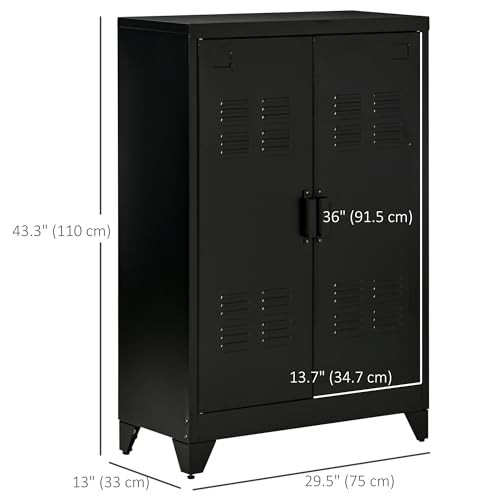 Return Policy Fast Delivery Trusted seller Industrial Storage Cabinet, Steel Garage Cabinet with Double Doors and Adjustable Shelves, Black Product Description Roomy Storage: This metal cabinet has three total shelves inside that allow you to store tools or cleaning equipment for your garage or work files for your home office. Flexible Shelving: Two of the shelves inside this double door cabinet are adjustable with 17 different level options, so you can easily store small or larger sized items. Locker Door Design: This sleek office cabinet has two metal doors, each with louvered doors to give a locker-style kind of look. Safety First: The anti-tipping strap on the back of this garage storage cabinet can be fixed to the wall, so you don't need to worry about it falling over. Metal Storage Cabinet Info: Overall Dimensions: 29.5" W x 13" D x 43.25" H. Weight Capacity: 22 lbs. (Shelf), 110 lbs. (Total) Shipping Returns Payment Shipping Shipping is FREE to all addresses other than APO/PO boxes in the lower 48 states. All our stock ships from US-based warehouses. Shipped via USPS or UPS (depending on location and package weight) Unless stated otherwise, all orders will ship within 24-72 hours of your payment being processed. Check our feedback to see the great reviews of FAST shipping we offer. Returns Seller does not accept returns Payment We currently accept payment via eBay managed payments only. Once payment is cleared, we will dispatch your shipment within 1-3 business days. Please refer to the "Shipping" tab for more information regarding shipping speed to your destination.