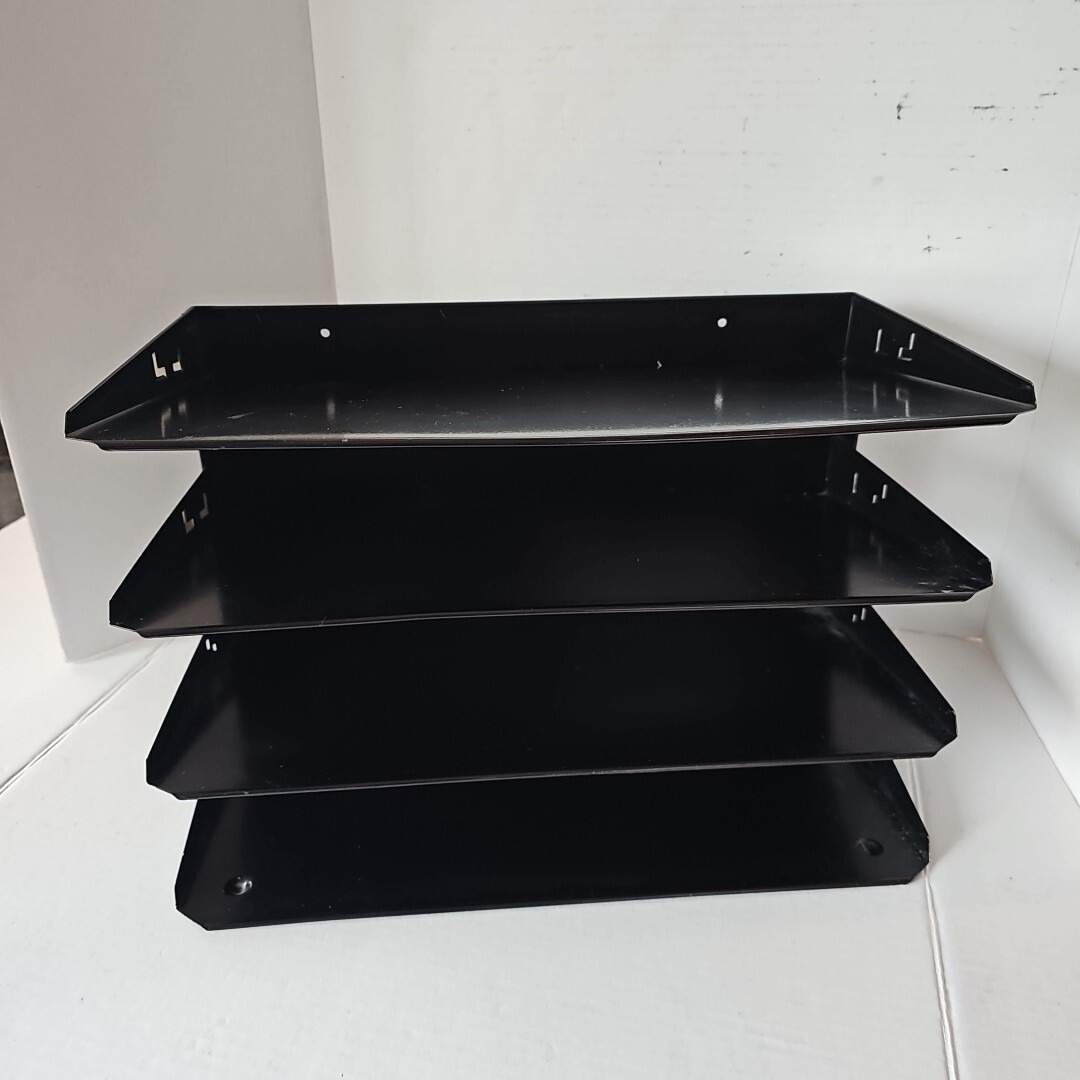 Keep your office organized with this four-tier tray file organizer. Made of durable metal, this Lit-Ning brand holder is perfect for keeping letters, files, and other important documents in one place. The black color adds a touch of professionalism to your desk while the legal size paper holder model ensures that you can easily handle any type of paper. Measuring 15" long x 8.5" deep x 10" tall, this file organizer is designed to fit comfortably on any desk. Made in the United States, this high-quality holder is a must-have for any business or industrial setting. Add this desk accessory to your collection today and stay organized in style.
