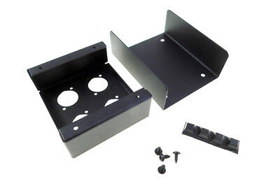 18 ga. steel project box 3-3/4" wide x 4 1/2" long x 1 5/8" tall overall . Unit is pre-punched for four Neutrik "D" series connectors. Durable powder coated finish, black.