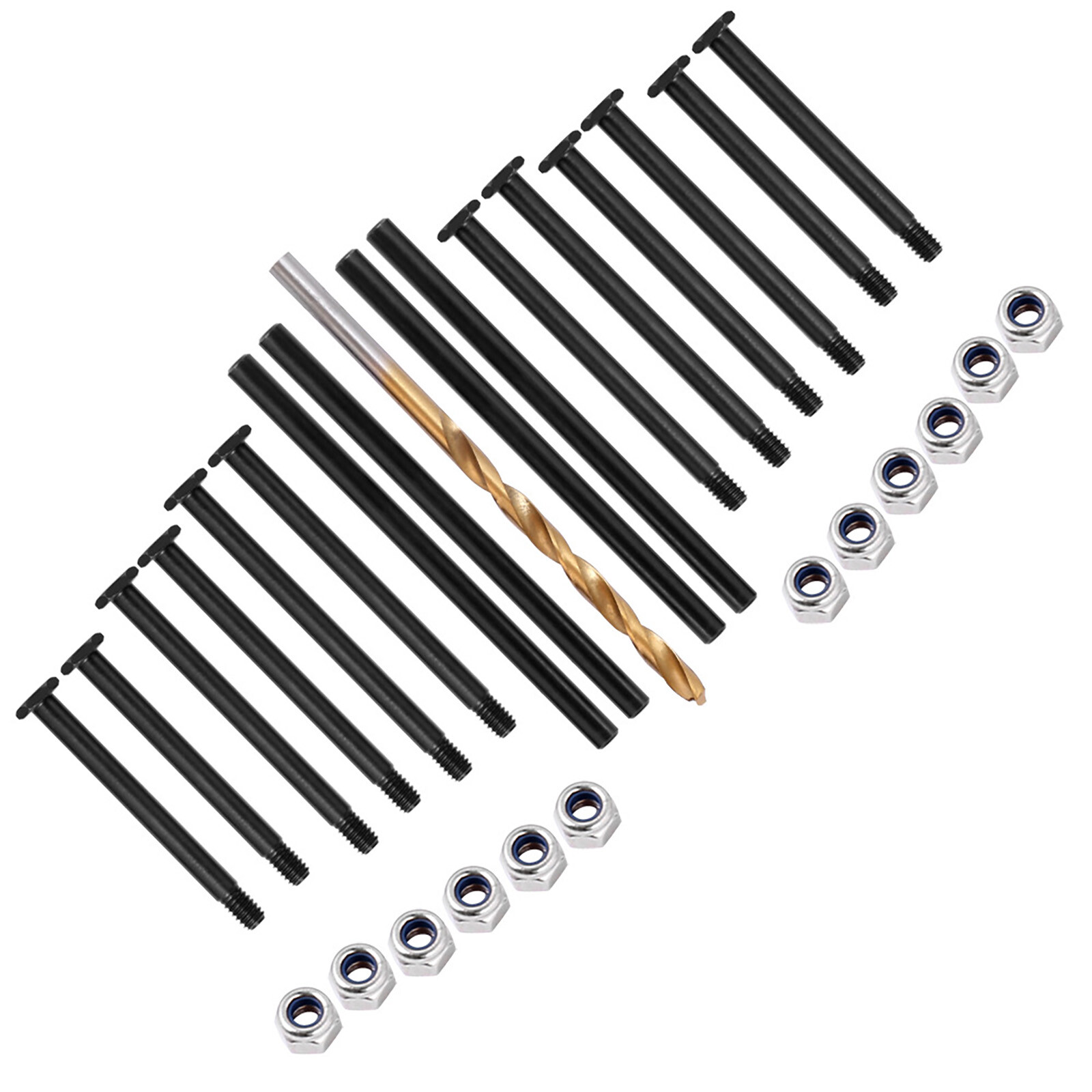 Product Description Steel Front Rear Suspension Arm Pins Kit for TRAXXAS 1/10 4WD MAXX MONSTER TRUCK Features: 100% brand new Medium-carbon steel material, blackened and hardened, head hexagonal design, double guarantee, easier to dismantle, not easy to slip the wire. Specifications: Material: Medium-carbon steel Applicable models: for TRAXXAS 1/8 6S MAXX Slash-102076-4, for TRAXXAS 1/10 4WD MAXX MONSTER TRUCK-89076-4, forTRAXXAS 1/10 MAXX W/WIDEMAXX MONSTER TRUCK-89086-4 Package includes: 16 x Front and rear suspension pins 12 x Lock nut 1 x Drill bit 4MM Note: With 4.0MM drill to expand the hole by yourself, change the nanny design, to prevent the PIN pin lost. If you have any questions, please feel free to contact us via ebay. We usually respond within 24 hours. Payment Shipping Returns Contact Us We accept all verified payments from ebay. Orders will be shipped after receiving cleared payment. Payment due within 7 days after auction ends and for buy it now listings. We ship most of our orders within 24 hours, and may up to 48 hours for. If you want faster shipping way. Please contact us before making payment. Sometimes due to problems with our transportation company system, your shipping information may be delayed to update. We recommend that you try again after 3-4 days. If you still haven't checked the shipping information, you can contact us by ebay message. Always believe we can figure things out with communication, if it comes to return, the pacakge must be intact and the same as you receive. If you have any questions, please feel free to email our service specialists 24 Hours a Day, 7 Days a Week. We will reply you ASAP. Return/refund is accepted within 30 days after the buyer receives the item. NO exchange will be accepted after 30 days from the date when the item is received. Please contact us first before returning your product!!! If you have any questions, our Customer Service staffs welcome you to email us. We strive to answer all questions and resolve any problems as quickly as possible. You can contact us 7*24, we will reply at the first time, and we will surely solve your problems. Note: 1.We try our best to reply to your emails as soon as possible, however, due to high volume of daily incoming emails and time zone difference, we may not be able to reply your emails immediately. Please allow 1 business days for us to response. If you do not receive any reply from us, please check your email ensuring your mailbox has not reached full size. 2.Due to some ISP SPAM filter settings, you may not be able to receive our replies; if you have problems receiving our emails, you may need to use a different email account to contact us. 3.Please give us the opportunity to resolve any problem. We understand the concerns and frustrations you might have, and will try our best to resolve the issues. Please email us before leaving any negative feedback or open any dispute on PayPal. 4.We care about our valued customers, and will always try to help you. So if you have any problems, please e-mail us immediately. Payment We accept all verified payments from ebay. Orders will be shipped after receiving cleared payment. Payment due within 7 days after auction ends and for buy it now listings. Shipping We ship most of our orders within 24 hours, and may up to 48 hours for. If you want faster shipping way. Please contact us before making payment. Sometimes due to problems with our transportation company system, your shipping information may be delayed to update. We recommend that you try again after 3-4 days. If you still haven't checked the shipping information, you can contact us by ebay message. Returns Always believe we can figure things out with communication, if it comes to return, the pacakge must be intact and the same as you receive. If you have any questions, please feel free to email our service specialists 24 Hours a Day, 7 Days a Week. We will reply you ASAP. Return/refund is accepted within 30 days after the buyer receives the item. NO exchange will be accepted after 30 days from the date when the item is received. Please contact us first before returning your product!!! Contact Us If you have any questions, our Customer Service staffs welcome you to email us. We strive to answer all questions and resolve any problems as quickly as possible. You can contact us 7*24, we will reply at the first time, and we will surely solve your problems. Note: 1.We try our best to reply to your emails as soon as possible, however, due to high volume of daily incoming emails and time zone difference, we may not be able to reply your emails immediately. Please allow 1 business days for us to response. If you do not receive any reply from us, please check your email ensuring your mailbox has not reached full size. 2.Due to some ISP SPAM filter settings, you may not be able to receive our replies; if you have problems receiving our emails, you may need to use a different email account to contact us. 3.Please give us the opportunity to resolve any problem. We understand the concerns and frustrations you might have, and will try our best to resolve the issues. Please email us before leaving any negative feedback or open any dispute on PayPal. 4.We care about our valued customers, and will always try to help you. So if you have any problems, please e-mail us immediately. powered by