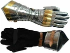 Made From : Best quality Iron Steel Beautified with Brass accents. Leather Glove inside of iron gauntlet Finish : Natural Steel Finish This is full adult size wearable Gauntlet Size : Standard Size Weight : Approx 4lbs. Can it be used for : reenactment ? Yes. Can it be used for reenactment ? : Yes We supply this helmet pre oiled for protection from rust. Use this helmet as a great Halloween costume ALL MEASUREMENTS AND WEIGHTS ARE IN APPROX. A Fine quality Handmade Item. 100% Hand Crafted in India. Please Note This is a reproduction (not sold as antique)