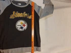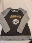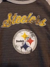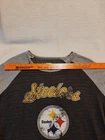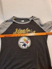 Steelers NFL Team Apparel Women's Size Large Crew Neck Sweatshirt Lightweight In good pre-owned condition may show signs of wear from use/handling/storage/display. Please view all pics for condition/details/flaws/issues. SOLD AS IS The logo/graphic looks like there may be lose but I don't know if it was made to look like that. There is/maybe marks/spots/dirt/debris please see photos 1-15, there is/maybe paint loss/sticker loss please see photos 1-15, there is lite discoloration please see photos 1-15, there may be small snags or peeling to item please see photos 1-15, please see all photos for condition/issues/details.