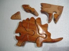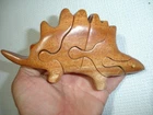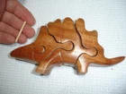 Vintage handmade wood Dinosaur art puzzle from Vietnam (original price tag was $55-$65... last photo shows orig. price tag on one of my other similar puzzles where the tag never fell off the wrapper yet)... perfect for the puzzle-collector or for developing problem solving & motor skills in kids... ... measures about 6.5" long x 3.5" tall x 1.35" thick . 7 quality wood pieces & 1 one little "eyeball" wood peg to lock it all in place... (8 pieces total)... Please include $4.95 domestic s/h. Thanks for stopping in... "For God so loved the world that He gave his one and only Son, that whoever believes in him, shall not perish but have eternal life" Jesus (John chapter three)