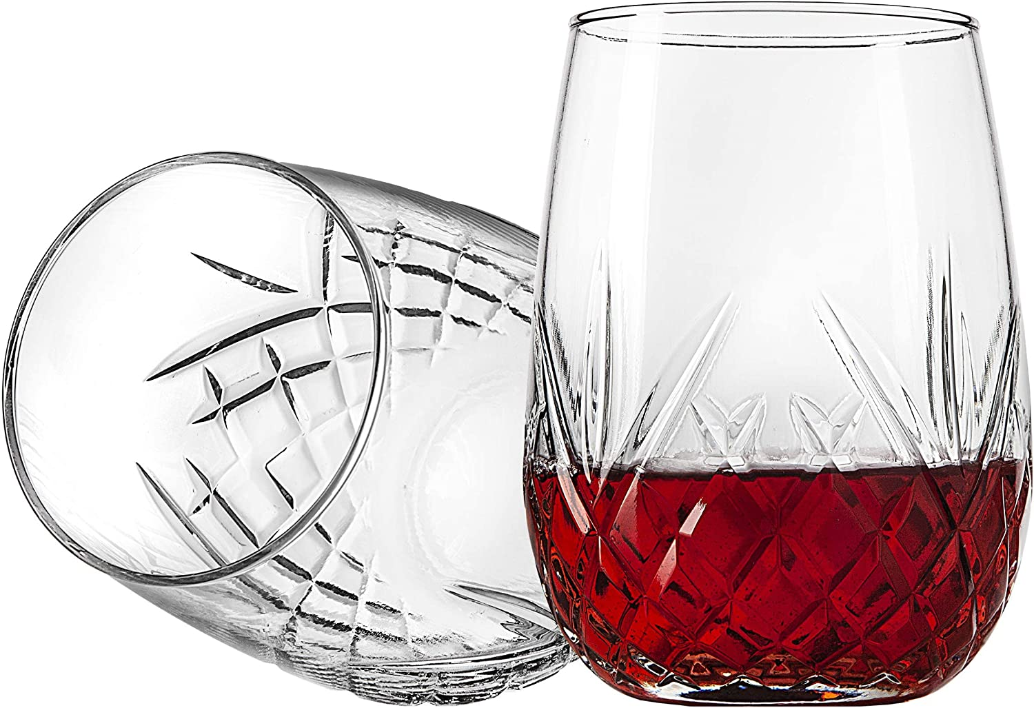 Dublin crystal collection wine glasses are meticulously crafted in Italy. These beautiful stemless wine glass goblets compliment any decor. Perfect for red wines or white wines. Brilliant classic design cups will impress for years to come. Lead Free. Dishwasher Safe. Capacity: 16oz MADE IN ITALY - Set of 4 Since 1973 Godinger has specialized in handcrafted silver, pewter, crystal, stainless, and alternative metal giftware. From wedding gifts, candlesticks, barware, bakeware, tea sets and frames, you are sure to find the perfect item for any special occasion. Godinger products are available at all major retailers across the US and Canada. Godinger Wine Glasses Stemless Goblet Beverage Cups, Italian Made - Dublin Collection, 16oz, Set of 4