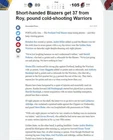 This is an Original 100% Authentic Full Unused Season Ticket from the 2009-10 NBA Season. January 2, 2010 Portland Trail Blazers vs Golden State Warriors at the Rose Garden Arena in Portland, Oregon 1/2/2010 PORTLAND TRAIL BLAZERS 40th ANNIVERSARY - ripcity SINCE 1970 BRANDON ROY "B-Roy" pictured on the ticket (HIGH SCORER 37-Points) STEPHEN CURRY "Baby-Faced Assassin" PORTLAND DEBUT ROOKIE SEASON 1st GAME PLAYED in PORTLAND!!! 32nd NBA GAME PLAYED 41st 3-POINTER MADE 375th POINT SCORED (375 points) 9 Points 1 Rebound 1 Assist 1 Steal (Steph, Baby-Faced Assassin, Chef Curry, The Human Torch, Threezus) 8x All Star, 2x Scoring Champ, 2015-16 STL Champ 3x NBA Champ, 7x All-NBA, 2009-10 All-Rookie 2x MVP, NBA 75th Anniv. Team, 2021-22 AS MVP BRANDON ROY "B-Roy" GAME HIGH 37 POINTS 37 Points 6 Rebounds 5 Assists 2 Steals (B-Roy, Daggers, The Natural) 3x All Star, 2x All-NBA 2006-07 ROY, 2006-07 All-Rookie (Pictured on ticket) MONTA ELLIS 30 Points 5 Rebounds 4 Assists MARTELL WEBSTER 21 Points 11 Rebounds 3 Assists 2 Blocks ANDRE MILLER 23 Points 5 Rebounds 6 Assists 1 Steal DANTE CUNNINGHAM 6 Points 10 Rebounds 1 Assist 1 Block (ROOKIE) Short-handed Blazers get 37 from Roy, pound cold-shooting Warriors PORTLAND, Ore. -- The Portland Trail Blazers keep losing players -- and they keep winning games. Brandon Roy scored 37 points, Andre Miller added 23 and the Blazers won for the sixth time in seven games with a 105-89 victory over the Golden State Warriors on Saturday night despite dressing only eight players . "We're just laughing because we can't understand it either," said Martell Webster, who had 21 points and 11 rebounds for the Blazers. "We're just going out and playing. We have nothing to lose." Monta Ellis continued his strong play against Portland, leading the Warriors with 30 points. Corey Maggette added 22 points and 10 rebounds, and Anthony Randolph had 15 points and 11 rebounds for the Warriors, who shot 68.4 percent in the first quarter but 33.3 percent the rest of the way. They tied a season low for points and are 0-9 when scoring fewer than 100. Blazers have been hampered by a spate of injuries and essentially used six players. Rookie forward Jeff Pendergraph started but played just 9 minutes. Shavlik Randolph, a recent acquisition with an injury hardship exemption, played less than a minute. Of eight players on the shelf, the latest two to go down are forward LaMarcus Aldridge, who sustained a sprained ankle against the Clippers on Wednesday, and guard Steve Blake, who was hospitalized with pneumonia on Friday. "With only eight players we had to be very creative in finding ways to maximize our talent," said Juwan Howard, who added he had never seen one team have so many serious injuries in his 15-year NBA career. Golden State, on the other hand, is getting healthier. Center Andris Biedrins played his third game after missing 25, and power forward Ronny Turiaf rejoined the team Dec. 26 after missing 12 games. Even though Portland was missing big men Greg Oden, Joel Przybilla and Aldridge, neither Biedrins or Turiaf was a factor in the game. Roy was sensational for Portland, making 12 of 16 field goal attempts and 12 of 14 free throws in 42 minutes. He has scored 23 or more points in 15 consecutive games, the longest string of 20-point games in the league. He was nearly matched by Ellis, who had 13 of his points in the first quarter but was less effective as Portland pulled ahead in the fourth. Ellis had 34 points, eight assists and a career-high tying six steals against Portland in a 108-94 win on Nov. 20. "I can't win a game by myself," Ellis said. "It just wasn't there tonight. Nobody played up to their ability." The Warriors (9-23) are one of only three teams in the NBA with less than 10 wins. "That was one of the worst performances of the season -- that I coached anyway; we had a couple of stinkers when I was sick," Golden State coach Don Nelson said. "We just didn't get any performances out of our smalls. They went and matched up with us and their smalls beat our smalls." Golden State ran out to a 17-3 lead and was up 41-31 after the first quarter, making 15 of 22 from the field. The second quarter was an entirely different story for the Warriors, who went just 6 of 18 from the field and scored only 15 points while letting Portland back in the game. Martell Webster hit a pair of free throws to pull the Blazers within one, 56-55 at the half. The Blazers took their first lead early in the third after Webster made two 20-footers. Anthony Randolph scored to give the Warriors a 69-66 lead, but Portland closed out the third with a 12-4 run. Meanwhile, the Warriors had lost all ability to hit shots and Portland gained a comfortable advantage. Webster made a 3-pointer to give the Blazers an 89-80 lead. Roy dunked and then hit two free throws with 3:16 remaining to put Portland up by 12 and essentially seal the game. Game notes -- Golden State is 3-16 on the road this season. ... The Warriors have dominated the series of late, winning five of the last seven. ... Rookie Dante Cunningham had a career-high 10 rebounds for Portland. ULTRA RARE FULL SEASON TICKET IN MINT CONDITION!!! You get the ticket in the photos. No Creases, Sharp Corners, Beautiful Ticket! Ticket measures 2-1/4 x 6-1/2 Inches. Section 114 - Row B - Seat 9 Photo/Scans have been watermarked for auction purposes only. Ticket will be shipped in the Ticket Toploader (Hard Plastic Holder) shown in the photos. It will be protected and surrounded by 2 pieces of rigid cardboard and sent via USPS with tracking. For multiple ticket orders add items to cart for combined shipping.