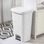 The 11.9 Gallon / 45 Liter StepOn Wastebasket brings a modern aesthetic to a household essential with sleek lines and an attractive easy to clean textured finish. The ribbed foot pedal ensures that the hands-free wastebasket open easily with a slight step. Its space efficient shape fits perfectly against a wall or cabinet in the kitchen or workspace. Changing the trash liner is simple with a wide opening and a lid that stays open while removing and replacing the bag. An oversized lid design hides the trash bag and offers a neat, clean look. A convenient comfort handle on the back of the lid provides an area to lift and transport the wastebasket when needed. The overall assembled dimensions of this item are 16 1/8" L x 13 1/4" W x 24 1/2" H. On Feb 19, 2025 at 01:31:34 PST, seller added the following information: