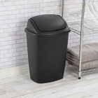 The Sterilite 7.5 Gallon SwingTop Wastebasket is an ideal solution for bigger spaces and is great for use in the home or kitchen. It features an easy-to-clean textured surface and the SwingTop lid swings in easily when pushed. In addition, the wastebasket conveniently accommodates a standard 8-gallon trash liner. The combination of the polished and textured sides will add a fashionable element to any home décor. When the SwingTop wastebasket is closed, items are then concealed making for a more clean and organized look to wherever it is placed in the home, office or kitchen. The overall assembled dimensions of this item are 14 5/8" L x 11 3/8" W x 21 5/8" H. Sterilite Adult Plastic 7.5 Gal. SwingTop Wastebasket Black: Outside Dimensions: 14 5/8" x 11 3/8" x 21 5/8" 7.5 Gallon SwingTop is a good mid-sized option for busy rooms, where space may be limited Single unit option Classic color to complement all décor - Black The Sterilite 7.5 Gal SwingTop features a lid that swings open when touched and stays open when lifted SwingTop feature allows lid to swing-in easily when pushed Convenient 7.5 gallon capacity is ideal for use in the kitchen or office Accommodates standard sized 8-gallon trash liner Easy to clean textured surface Ideal for use in the Kitchen, Bathroom, Bedroom, Dorm Room, Mudroom or Basement BPA-free and phthalate-free Made of easy to clean plastic No batteries required