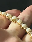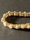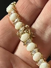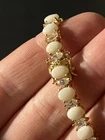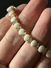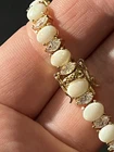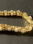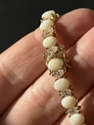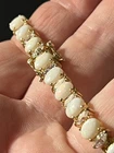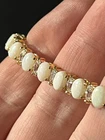 127 A nice bracelet with a gold plated finish over 925 sterling silver. Set with genuine opals that look a lot better in person. Bracelet is in great shape. It has nice colors and nice luster.