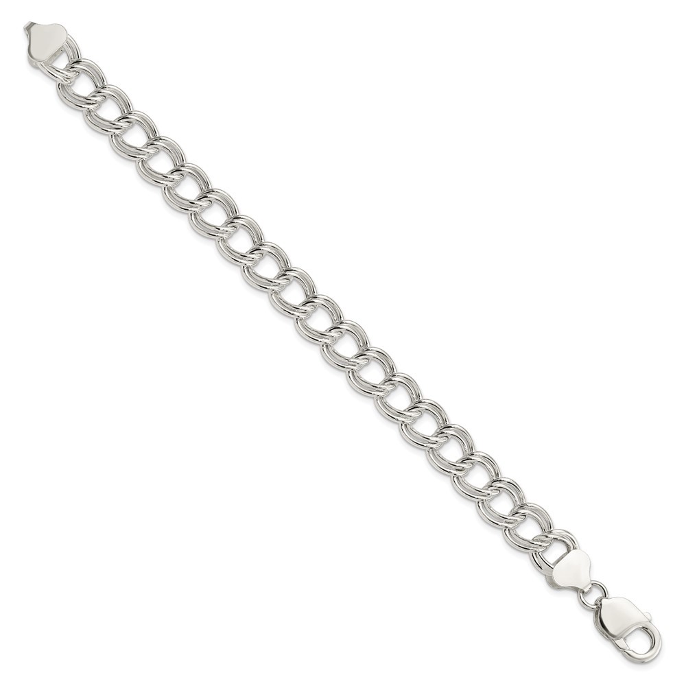 Sterling Silver 4mm Double Link Chain Charm Bracelet 7" 6.44gm