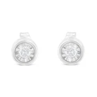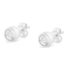 Frame her face with the bold and impressive look of these fabulous diamond bezel stud earrings. Crafted in fabulous sterling silver, each earring features a mesmerizing round-cut 0.10 carat brilliant-cut rount diamond in a fluted frame-style miracle setting, set inside streamlined modern barrel bezels. Captivating with 0.20 in total of diamonds and a brilliant buffed luster, these anytime post earrings fasten securely and comfortably. This stud is the perfect item to wear on any outfit and is considered an investment piece. Specifications: Birthstone Month 1 (Primary): April Color Code: W Combined Dimensions: 16 x 6 x 6 Design Style: Miracle Stud Earrings/ Bezel Studs Diamond 1 Clarity: I2-I3 Diamond 1 Color: I-J Diamond 1 Count: 2 Diamond 1 Cut: Very Good Diamond 1 Origin: Natural Diamond 1 Setting: Miracle Diamond 1 Shape: Round Diamond 1 Total Weight: 0.2 Diamond 1 Treatment: None Diamond 1 Weight: 0.1 Diamonds (Yes/No): Yes Earring Finding: Push Back Gemstone (Yes/No): No Gender: Women H (mm): 6 Karat/Purity/stamp: .925 L (mm): 16 Material 1: Sterling Silver Material 2: Diamonds Necklace Chain Material: Y Plated?: Yes Plating Type: Rhodium Total Diamond Quantity: 2 Total Diamond Weight: 0.2 W (mm): 6