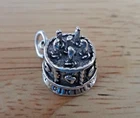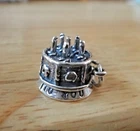 This new sterling silver large decorated birthday cake charm is 3D and says Happy Birthday around the bottom! It has 6 candles on the top and would be perfect for a Birthday gift! The charm is about 13 mm in diameter and 13 mm thick. It is hollow on the bottom. I also have many other items such as 100 different stud earrings as well as bracelets, chains, and over 6000 other charms.